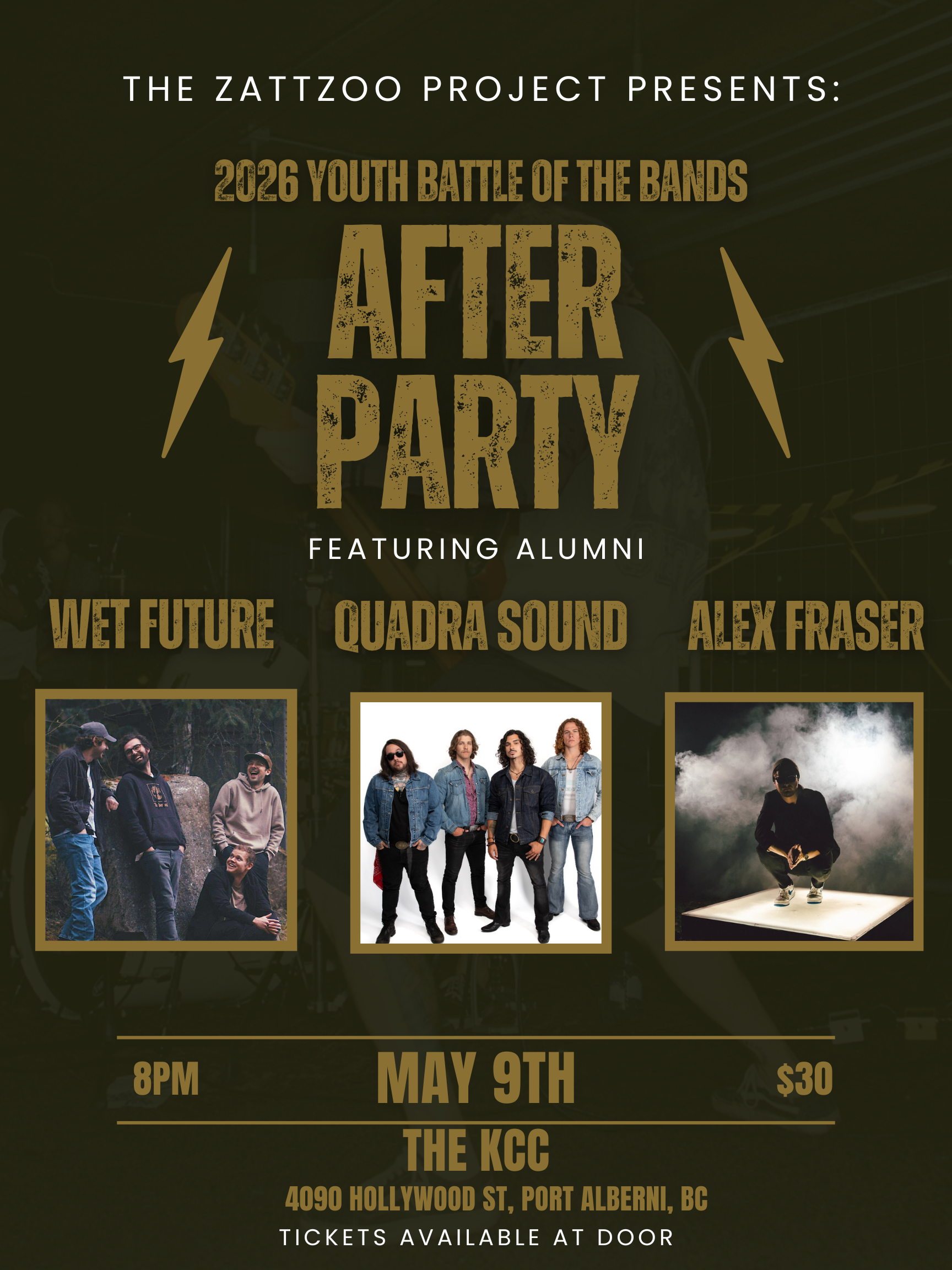 ZATTZOO BATTLE OF THE BANDS and ALUMNI AFTERPARTY featuring ALEX FRASER, QUADRA SOUND, and WET FUTURE